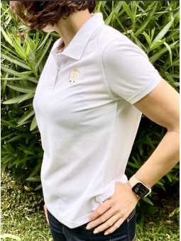 Pull femme avec son col en V, brodé avec golfeuse dans le dos...