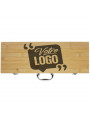 La personnalisation est réalisée par gravure de votre logo sur le coffret en bois. Cette technique garantit un rendu élégant, précis et durable, parfaitement adapté aux matières naturelles. Le logo est fourni par le client, avec fichier vectoriel recommandé, pour un résultat professionnel et valorisant.