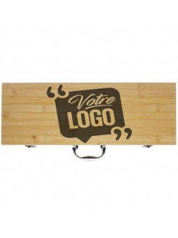 La personnalisation est réalisée par double gravure, garantissant une visibilité raffinée de votre marque. Le marquage est effectué à la fois sur la pièce métallique du portefeuille et sur le cuir, en haut à gauche, pour un rendu discret et haut de gamme. Vous pouvez joindre un fichier, un texte à graver ainsi que vos directives précises afin d’obtenir une personnalisation parfaitement conforme à votre identité visuelle.