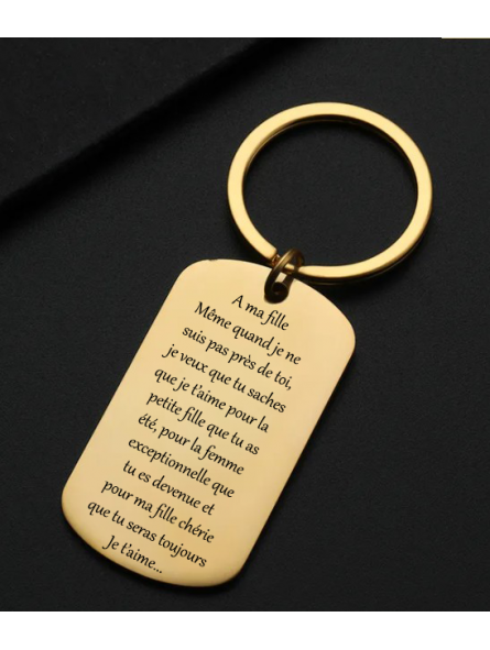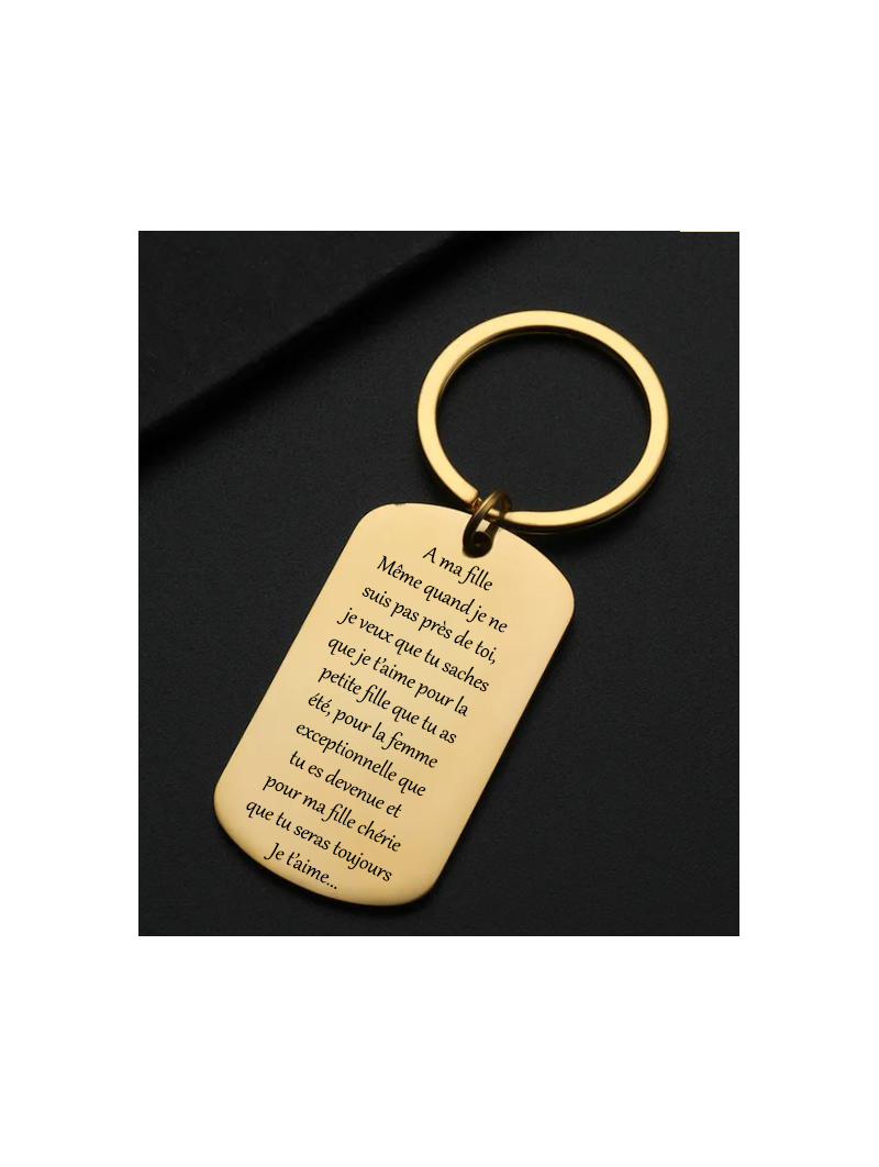 Ce porte-clé élégant, disponible en finition argentée ou dorée, a été imaginé comme un véritable lien affectif entre une mère, un père et sa fille.