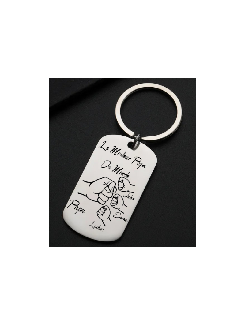 Avec sa médaille rectangulaire de 5 × 2,8 cm et son anneau robuste de 3 cm, ce porte-clé s’accroche facilement à un trousseau de clés, un sac ou un porte-documents, et accompagne papa au quotidien.