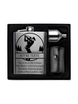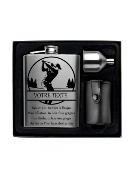 Sur la face avant, un motif de golfeur est gravé avec précision, apportant une touche sportive et raffinée. Intégré dans le dessin, un texte court au choix (prénom, surnom ou expression) pour transformer cette flasque en un objet unique.