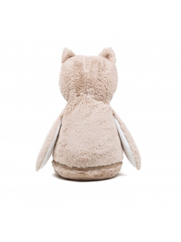 Cette peluche hibou de taille 29 cm sera brodé sur le ventre...