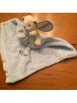 Ce doudou ourson bleu layette comporte un hochet à l'intérieur...
